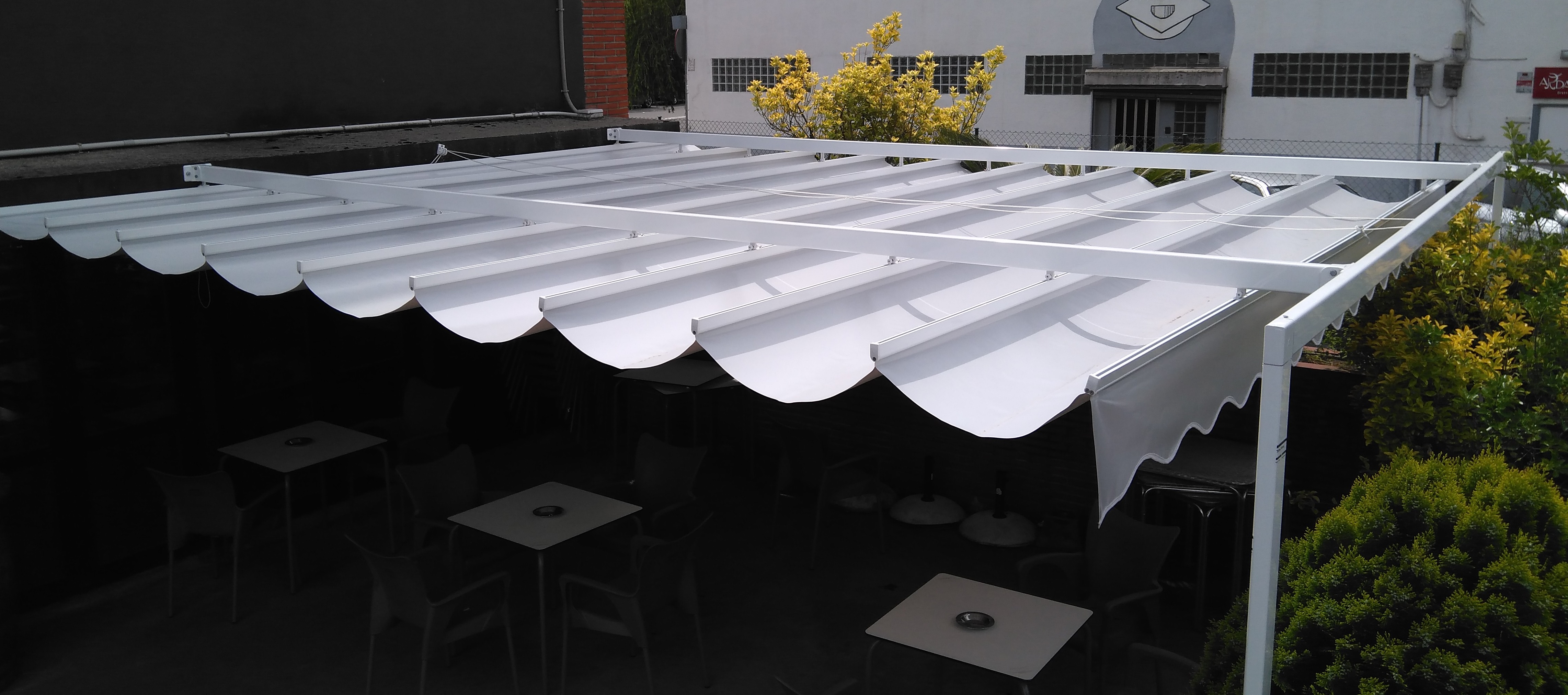 Toldo Plano Toldo plano Toldo plegable conducido por guías transversales. Posibilidad de instalar con varios modelos de estructuras o entreparedes tanto de forma horizontal como con inclinación. Resistente al viento y al agua.